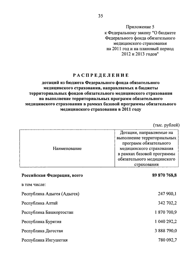 "О БЮДЖЕТЕ ФЕДЕРАЛЬНОГО ФОНДА ОБЯЗАТЕЛЬНОГО МЕДИЦИНСКОГО СТРАХОВАНИЯ НА 2011 ГОД И НА ПЛАНОВЫЙ ПЕРИОД 2012 И 2013 ГОДОВ"