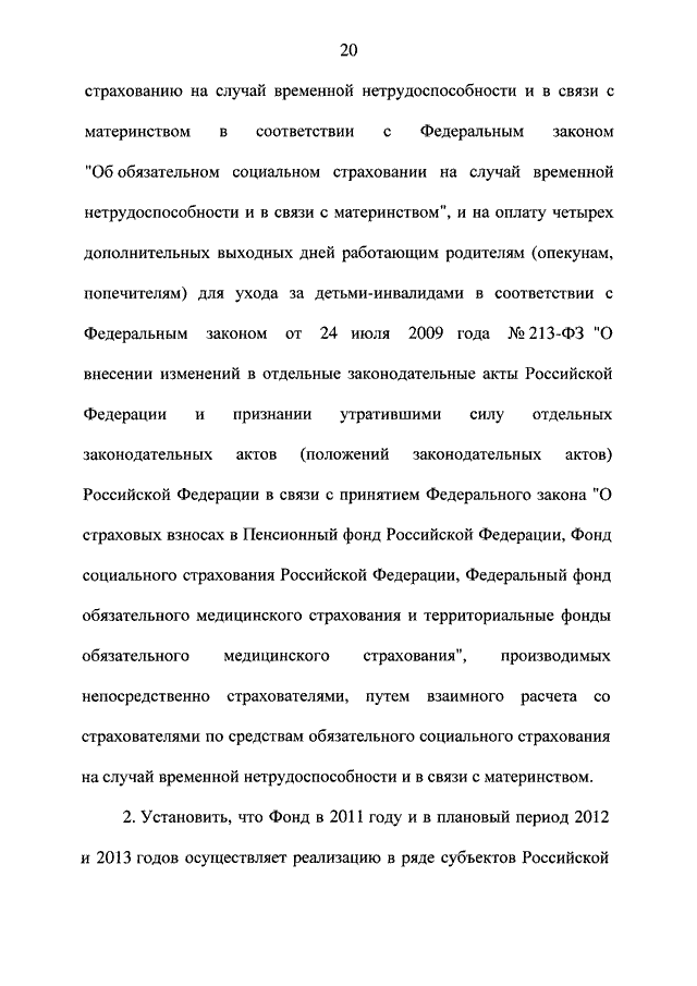 "О БЮДЖЕТЕ ФОНДА СОЦИАЛЬНОГО СТРАХОВАНИЯ РОССИЙСКОЙ ФЕДЕРАЦИИ НА 2011 ГОД И НА ПЛАНОВЫЙ ПЕРИОД 2012 И 2013 ГОДОВ"