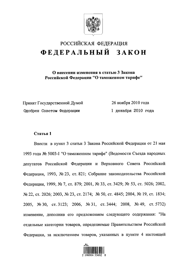 (принят ГД ФС РФ 26.11.2010)