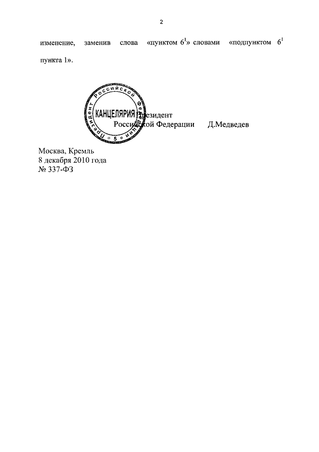 ФЕДЕРАЛЬНЫЙ ЗАКОН от 08.12.2010 N 337-ФЗ
