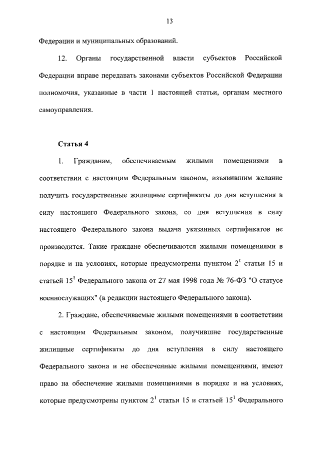 "О ВНЕСЕНИИ ИЗМЕНЕНИЙ В ФЕДЕРАЛЬНЫЙ ЗАКОН "О СТАТУСЕ ВОЕННОСЛУЖАЩИХ" И ОБ ОБЕСПЕЧЕНИИ ЖИЛЫМИ ПОМЕЩЕНИЯМИ НЕКОТОРЫХ КАТЕГОРИЙ ГРАЖДАН"