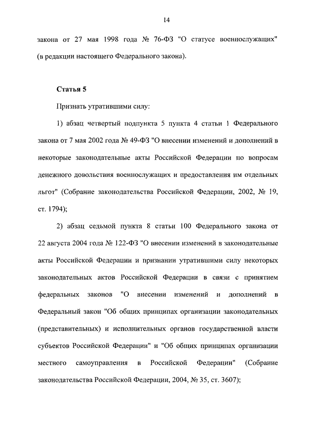 "О ВНЕСЕНИИ ИЗМЕНЕНИЙ В ФЕДЕРАЛЬНЫЙ ЗАКОН "О СТАТУСЕ ВОЕННОСЛУЖАЩИХ" И ОБ ОБЕСПЕЧЕНИИ ЖИЛЫМИ ПОМЕЩЕНИЯМИ НЕКОТОРЫХ КАТЕГОРИЙ ГРАЖДАН"