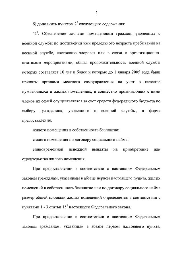 "О ВНЕСЕНИИ ИЗМЕНЕНИЙ В ФЕДЕРАЛЬНЫЙ ЗАКОН "О СТАТУСЕ ВОЕННОСЛУЖАЩИХ" И ОБ ОБЕСПЕЧЕНИИ ЖИЛЫМИ ПОМЕЩЕНИЯМИ НЕКОТОРЫХ КАТЕГОРИЙ ГРАЖДАН"