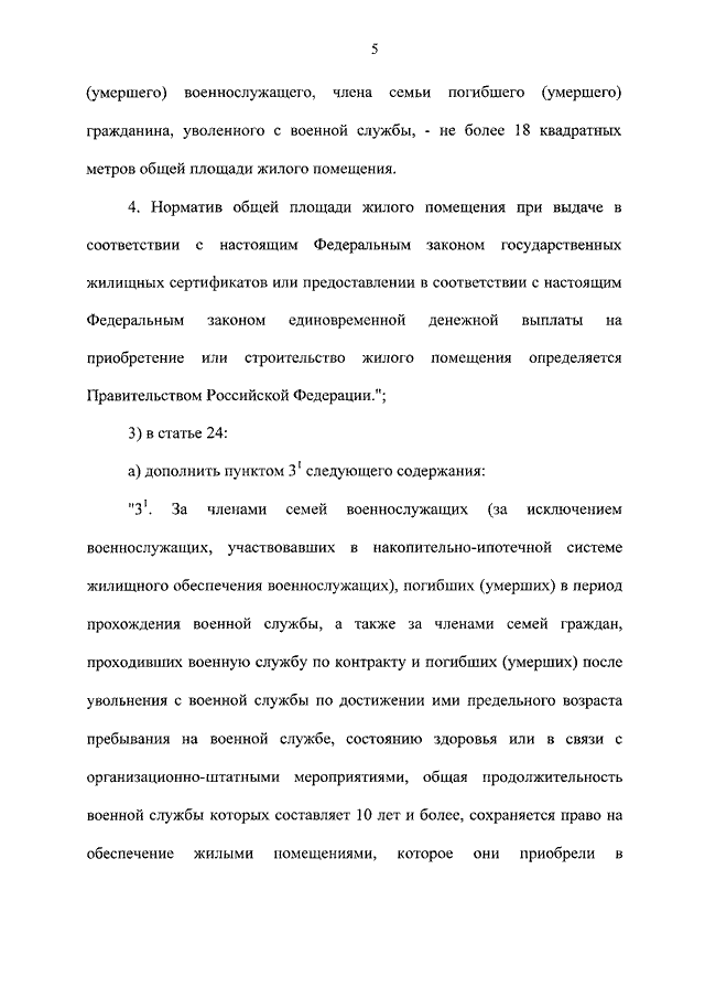 "О ВНЕСЕНИИ ИЗМЕНЕНИЙ В ФЕДЕРАЛЬНЫЙ ЗАКОН "О СТАТУСЕ ВОЕННОСЛУЖАЩИХ" И ОБ ОБЕСПЕЧЕНИИ ЖИЛЫМИ ПОМЕЩЕНИЯМИ НЕКОТОРЫХ КАТЕГОРИЙ ГРАЖДАН"