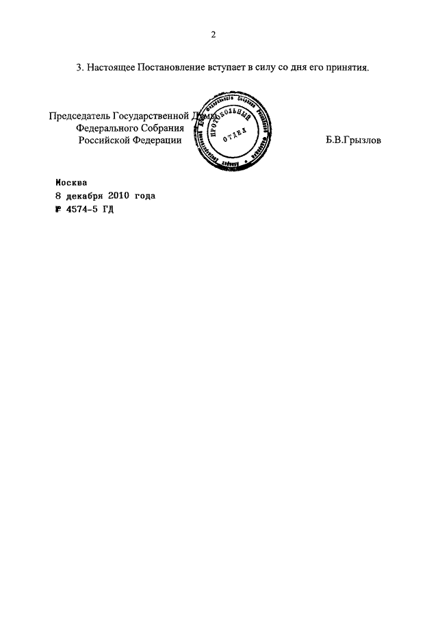 ПОСТАНОВЛЕНИЕ ГД ФС РФ от 08.12.2010 N 4574-5 ГД