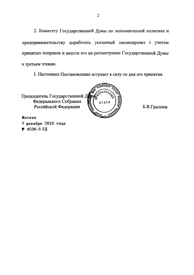 ПОСТАНОВЛЕНИЕ ГД ФС РФ от 07.12.2010 N 4536-5 ГД