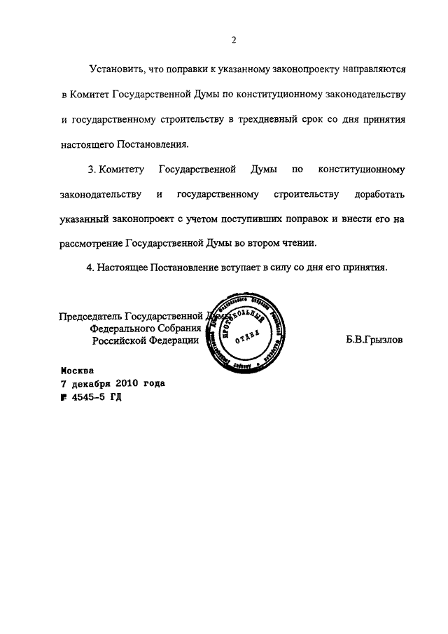 ПОСТАНОВЛЕНИЕ ГД ФС РФ от 07.12.2010 N 4545-5 ГД