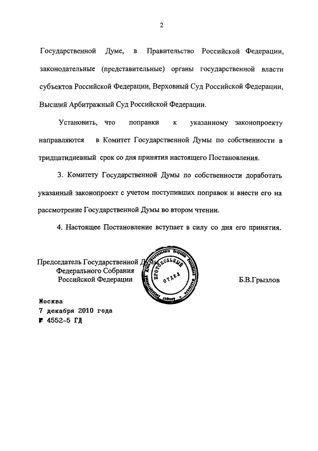 ПОСТАНОВЛЕНИЕ ГД ФС РФ от 07.12.2010 N 4552-5 ГД