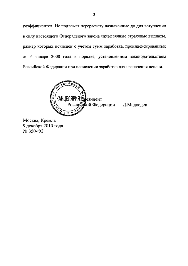 ФЕДЕРАЛЬНЫЙ ЗАКОН от 09.12.2010 N 350-ФЗ