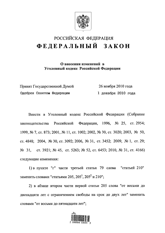"О ВНЕСЕНИИ ИЗМЕНЕНИЙ В УГОЛОВНЫЙ КОДЕКС РОССИЙСКОЙ ФЕДЕРАЦИИ"