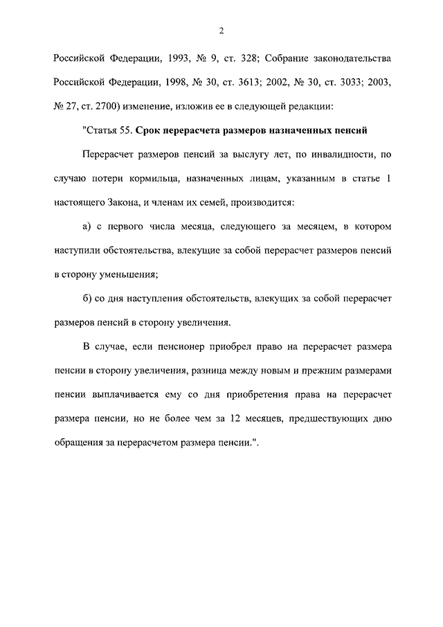 "О ВНЕСЕНИИ ИЗМЕНЕНИЯ В СТАТЬЮ 55 ЗАКОНА РОССИЙСКОЙ ФЕДЕРАЦИИ "О