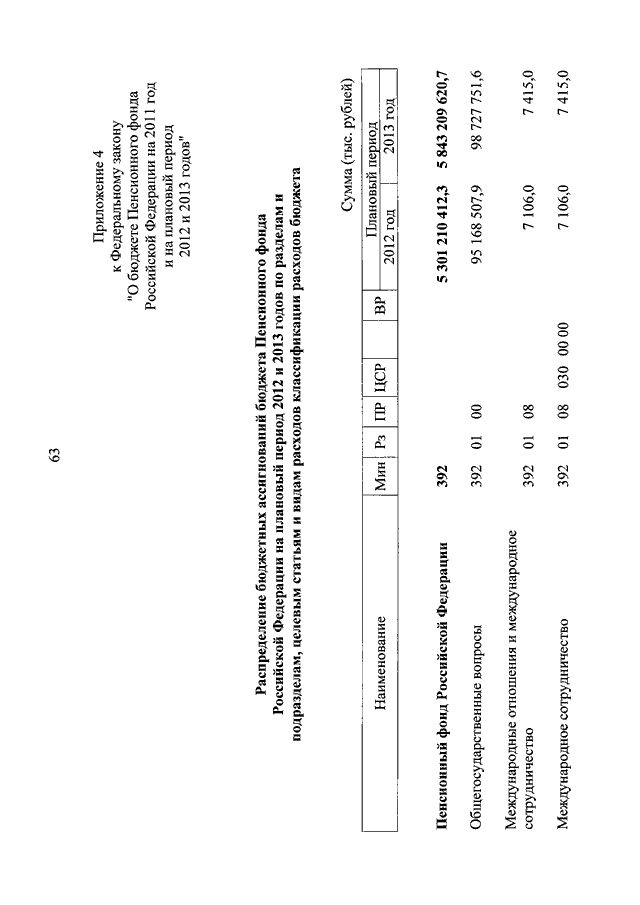 "О БЮДЖЕТЕ ПЕНСИОННОГО ФОНДА РОССИЙСКОЙ ФЕДЕРАЦИИ НА 2011 ГОД И НА ПЛАНОВЫЙ ПЕРИОД 2012 И 2013 ГОДОВ"