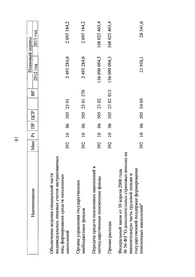 "О БЮДЖЕТЕ ПЕНСИОННОГО ФОНДА РОССИЙСКОЙ ФЕДЕРАЦИИ НА 2011 ГОД И НА ПЛАНОВЫЙ ПЕРИОД 2012 И 2013 ГОДОВ"