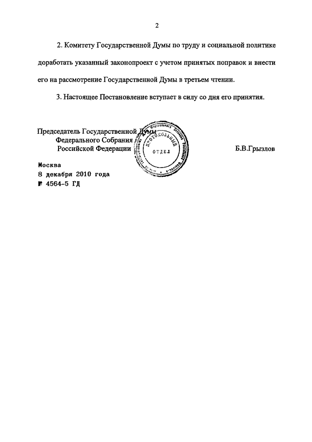 ПОСТАНОВЛЕНИЕ ГД ФС РФ от 08.12.2010 N 4564-5 ГД