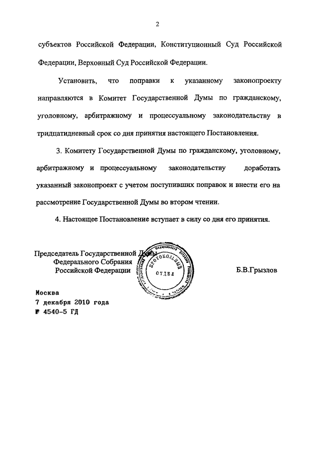 ПОСТАНОВЛЕНИЕ ГД ФС РФ от 07.12.2010 N 4540-5 ГД