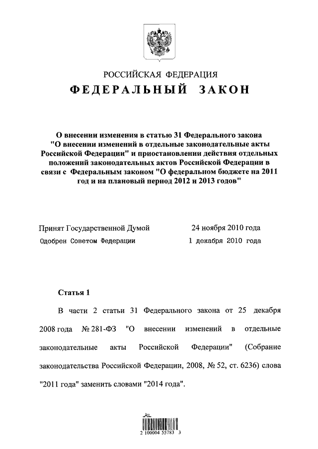 ФЕДЕРАЛЬНЫЙ ЗАКОН от 13.12.2010 N 358-ФЗ