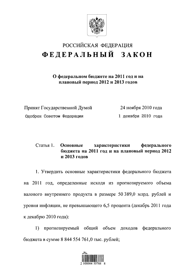 (принят ГД ФС РФ 24.11.2010)
