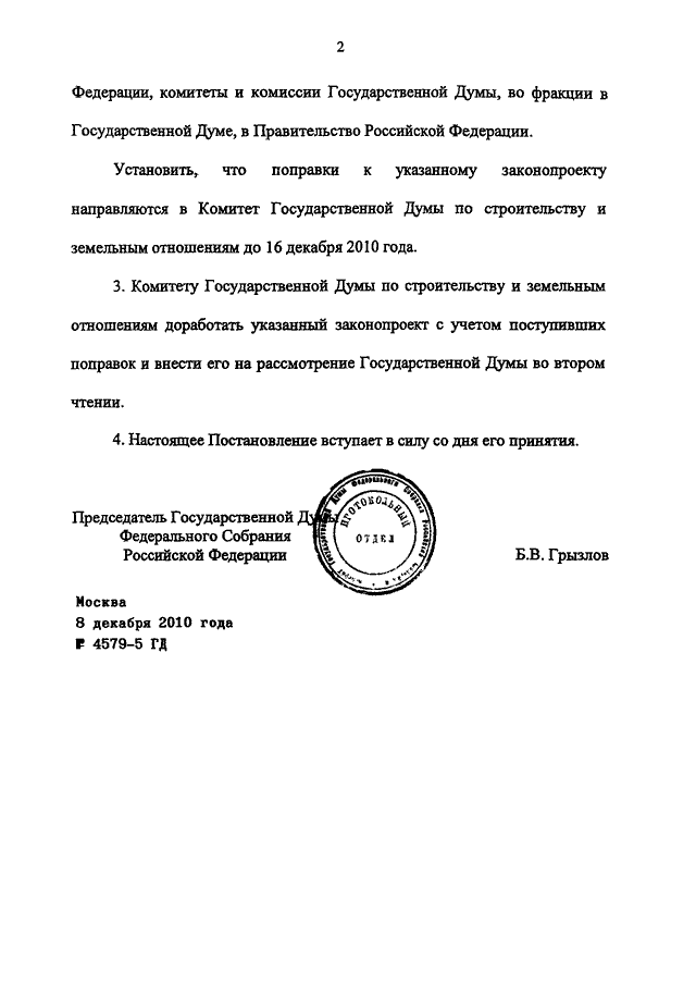 ПОСТАНОВЛЕНИЕ ГД ФС РФ от 08.12.2010 N 4579-5 ГД