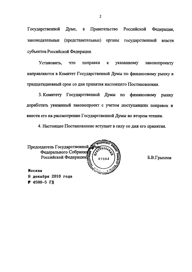 ПОСТАНОВЛЕНИЕ ГД ФС РФ от 08.12.2010 N 4580-5 ГД