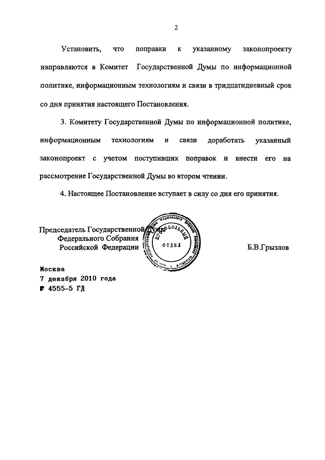 ПОСТАНОВЛЕНИЕ ГД ФС РФ от 07.12.2010 N 4555-5 ГД