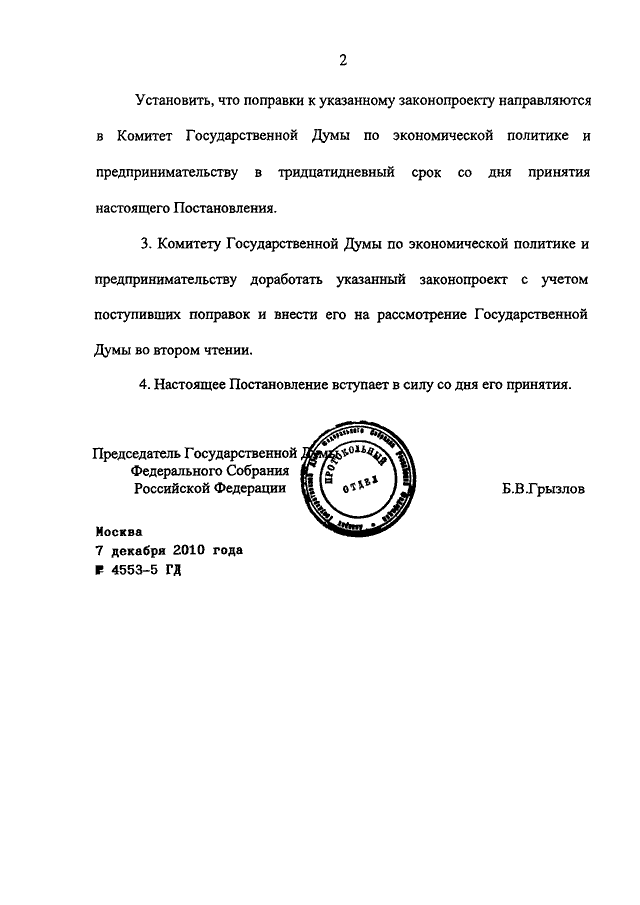 ПОСТАНОВЛЕНИЕ ГД ФС РФ от 07.12.2010 N 4553-5 ГД