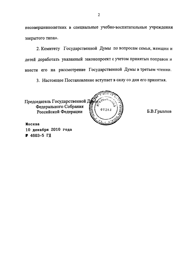 ПОСТАНОВЛЕНИЕ ГД ФС РФ от 10.12.2010 N 4603-5 ГД