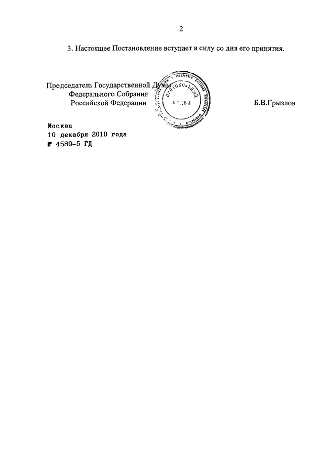 ПОСТАНОВЛЕНИЕ ГД ФС РФ от 10.12.2010 N 4589-5 ГД