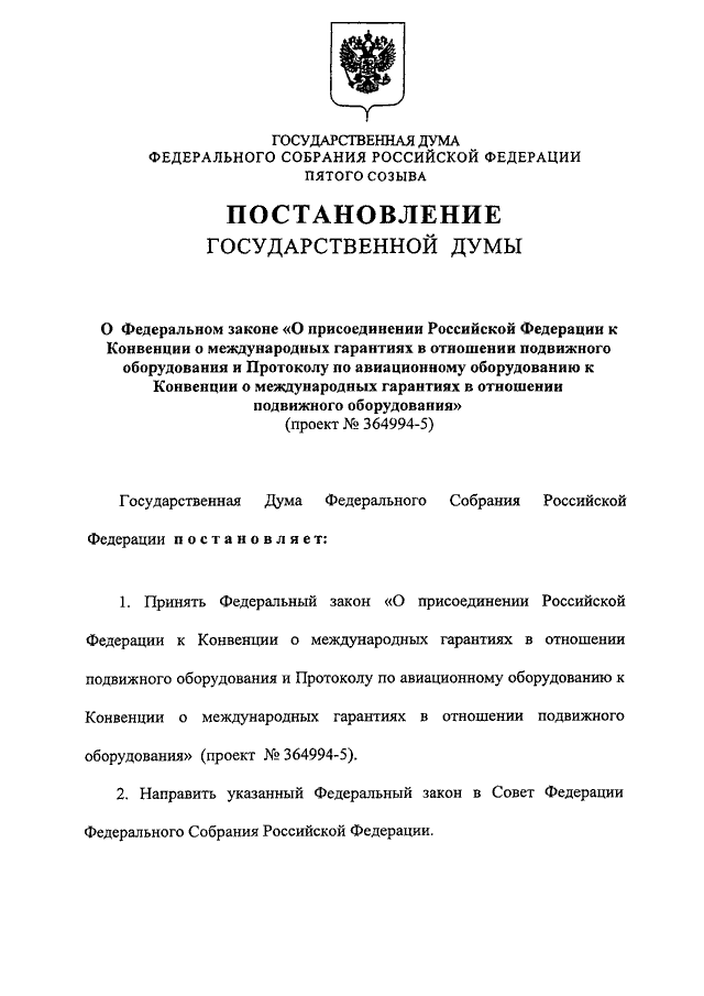 О МЕЖДУНАРОДНЫХ ГАРАНТИЯХ В ОТНОШЕНИИ ПОДВИЖНОГО ОБОРУДОВАНИЯ"