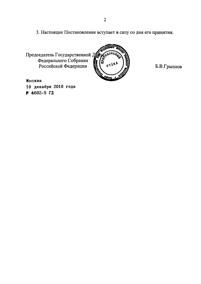 ПОСТАНОВЛЕНИЕ ГД ФС РФ от 10.12.2010 N 4602-5 ГД