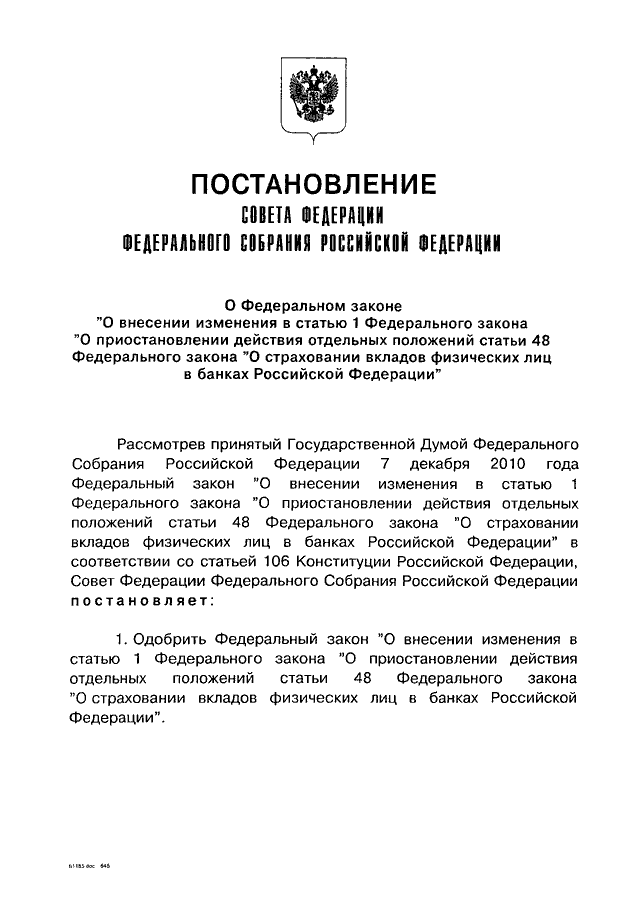 ПОСТАНОВЛЕНИЕ СФ ФС РФ от 15.12.2010 N 565-СФ