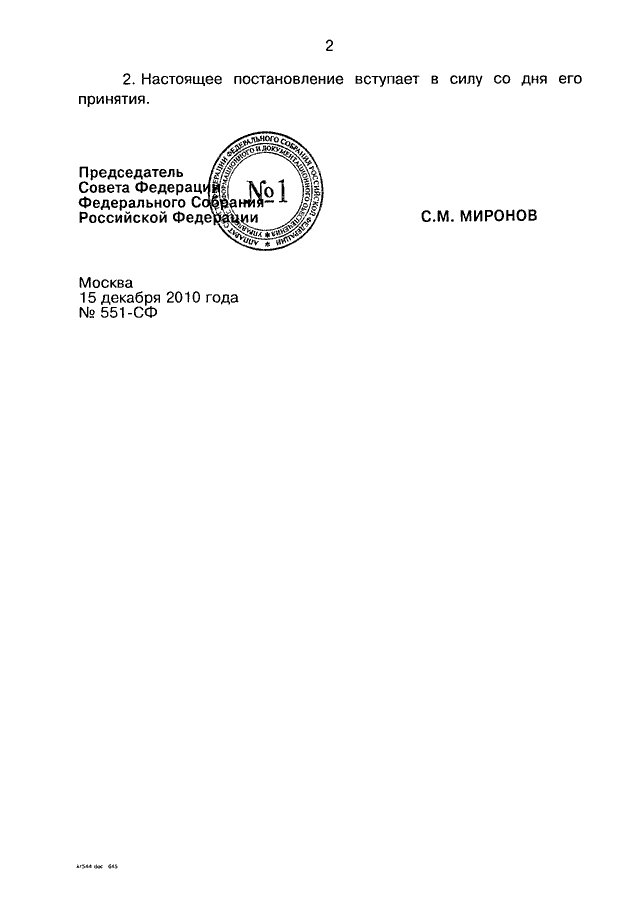 ПОСТАНОВЛЕНИЕ СФ ФС РФ от 15.12.2010 N 551-СФ