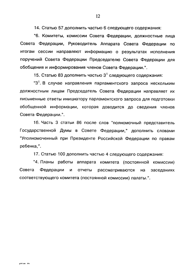 "О ВНЕСЕНИИ ИЗМЕНЕНИЙ В РЕГЛАМЕНТ СОВЕТА ФЕДЕРАЦИИ ФЕДЕРАЛЬНОГО СОБРАНИЯ РОССИЙСКОЙ ФЕДЕРАЦИИ"