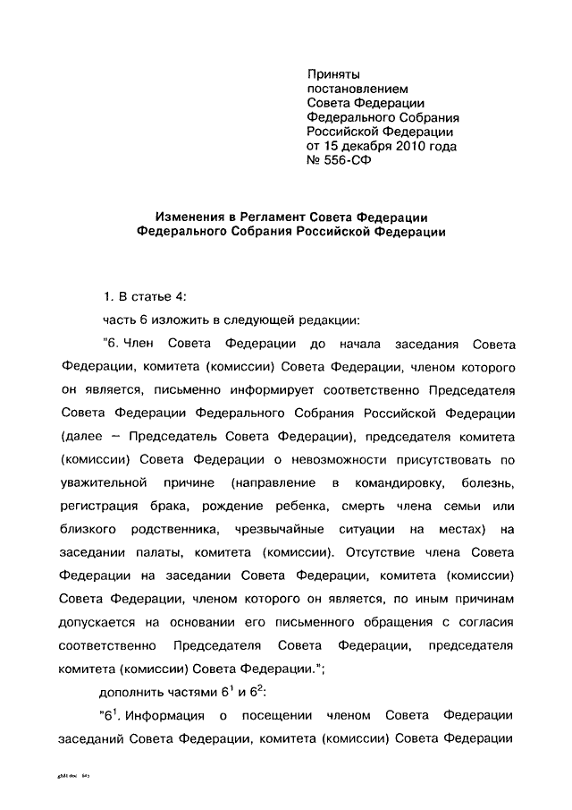 ПОСТАНОВЛЕНИЕ СФ ФС РФ от 15.12.2010 N 556-СФ