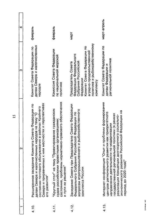 "О ПЛАНЕ МЕРОПРИЯТИЙ СОВЕТА ФЕДЕРАЦИИ ФЕДЕРАЛЬНОГО СОБРАНИЯ РОССИЙСКОЙ ФЕДЕРАЦИИ НА ВЕСЕННЮЮ СЕССИЮ 2011 ГОДА"