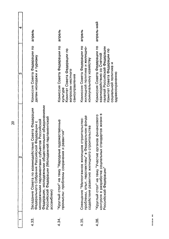 "О ПЛАНЕ МЕРОПРИЯТИЙ СОВЕТА ФЕДЕРАЦИИ ФЕДЕРАЛЬНОГО СОБРАНИЯ РОССИЙСКОЙ ФЕДЕРАЦИИ НА ВЕСЕННЮЮ СЕССИЮ 2011 ГОДА"