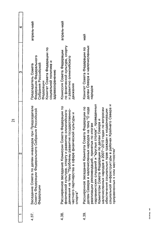 "О ПЛАНЕ МЕРОПРИЯТИЙ СОВЕТА ФЕДЕРАЦИИ ФЕДЕРАЛЬНОГО СОБРАНИЯ РОССИЙСКОЙ ФЕДЕРАЦИИ НА ВЕСЕННЮЮ СЕССИЮ 2011 ГОДА"