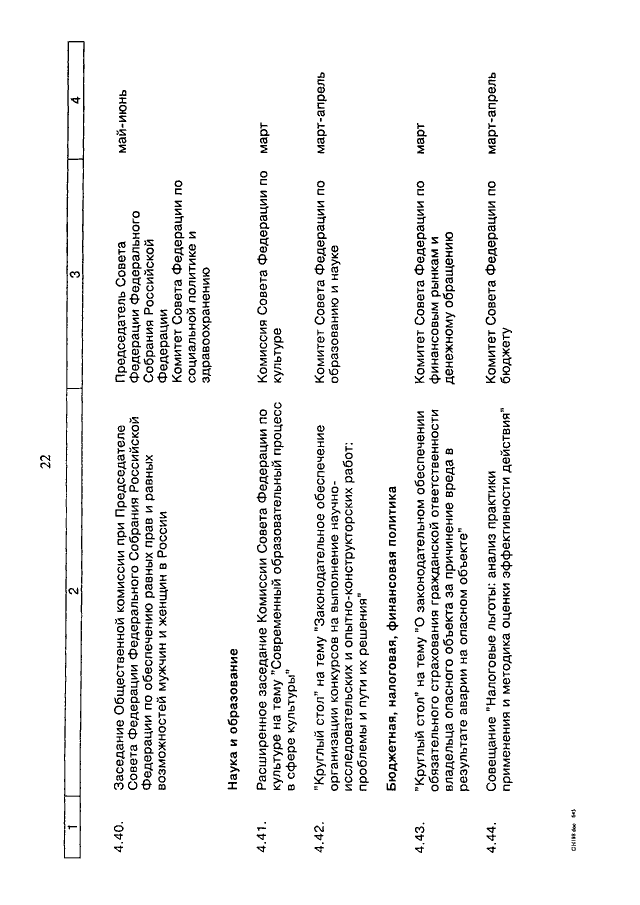 "О ПЛАНЕ МЕРОПРИЯТИЙ СОВЕТА ФЕДЕРАЦИИ ФЕДЕРАЛЬНОГО СОБРАНИЯ РОССИЙСКОЙ ФЕДЕРАЦИИ НА ВЕСЕННЮЮ СЕССИЮ 2011 ГОДА"