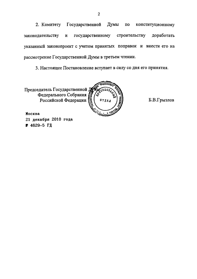 ПОСТАНОВЛЕНИЕ ГД ФС РФ от 21.12.2010 N 4629-5 ГД