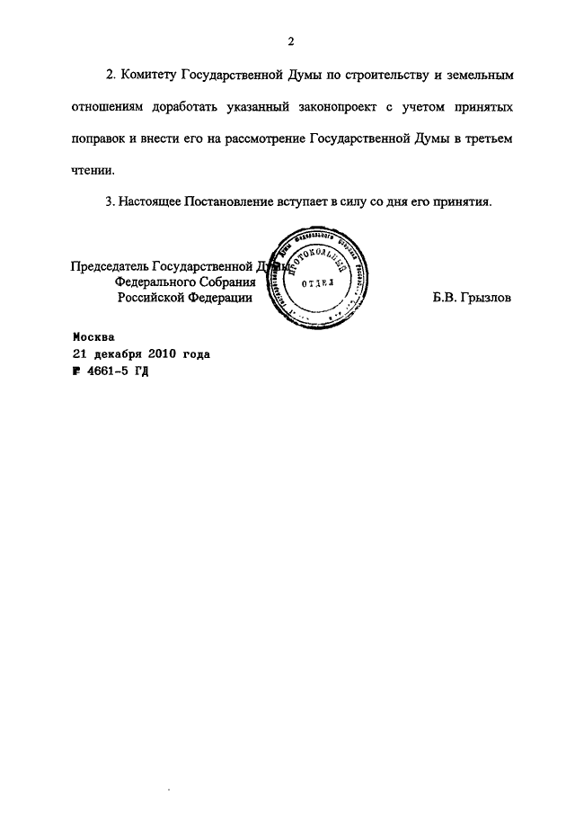 ПОСТАНОВЛЕНИЕ ГД ФС РФ от 21.12.2010 N 4661-5 ГД