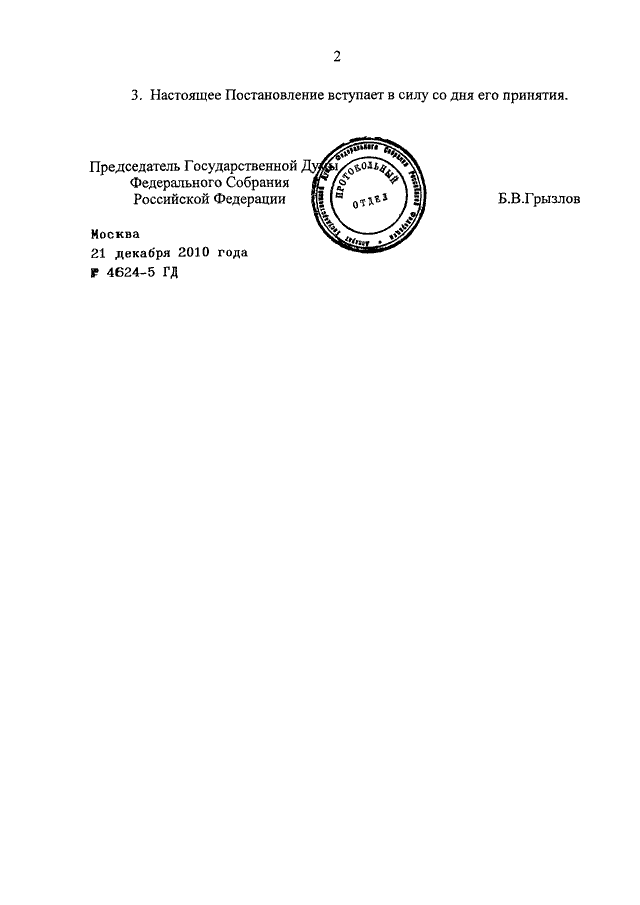ПОСТАНОВЛЕНИЕ ГД ФС РФ от 21.12.2010 N 4624-5 ГД