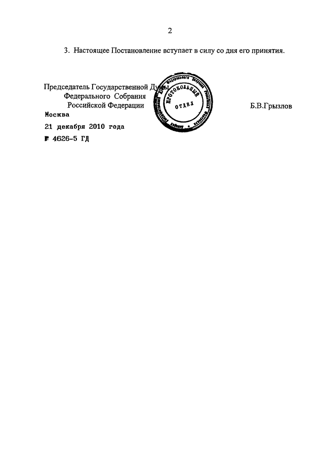 ПОСТАНОВЛЕНИЕ ГД ФС РФ от 21.12.2010 N 4626-5 ГД
