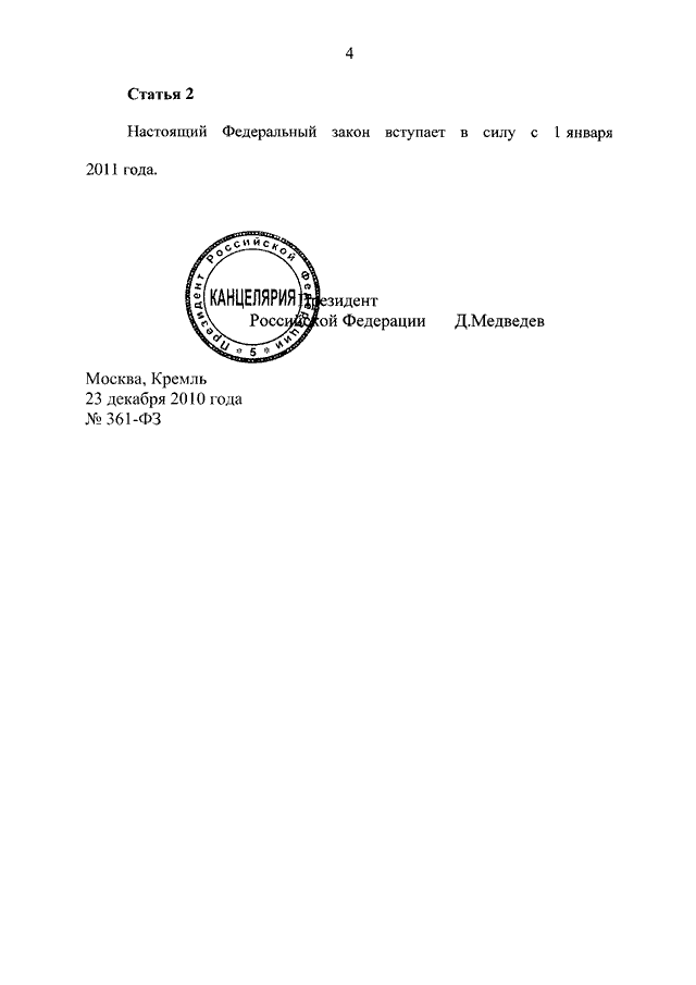ФЕДЕРАЛЬНЫЙ ЗАКОН от 23.12.2010 N 361-ФЗ