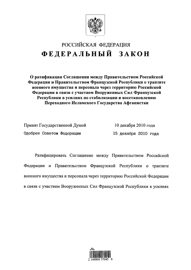 (принят ГД ФС РФ 10.12.2010)