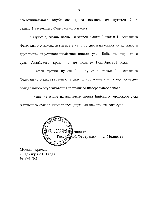 ФЕДЕРАЛЬНЫЙ ЗАКОН от 23.12.2010 N 374-ФЗ