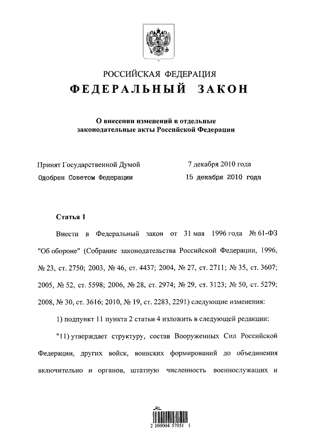 ФЕДЕРАЛЬНЫЙ ЗАКОН от 23.12.2010 N 377-ФЗ
