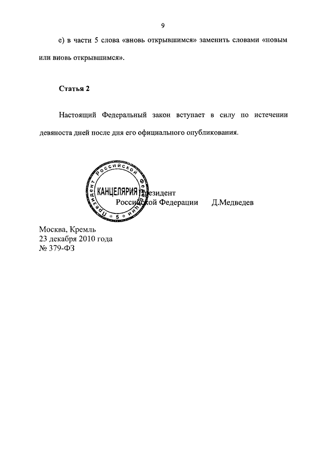 ФЕДЕРАЛЬНЫЙ ЗАКОН от 23.12.2010 N 379-ФЗ