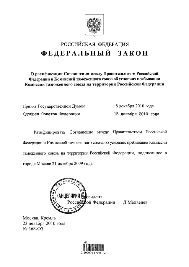 ФЕДЕРАЛЬНЫЙ ЗАКОН от 23.12.2010 N 368-ФЗ