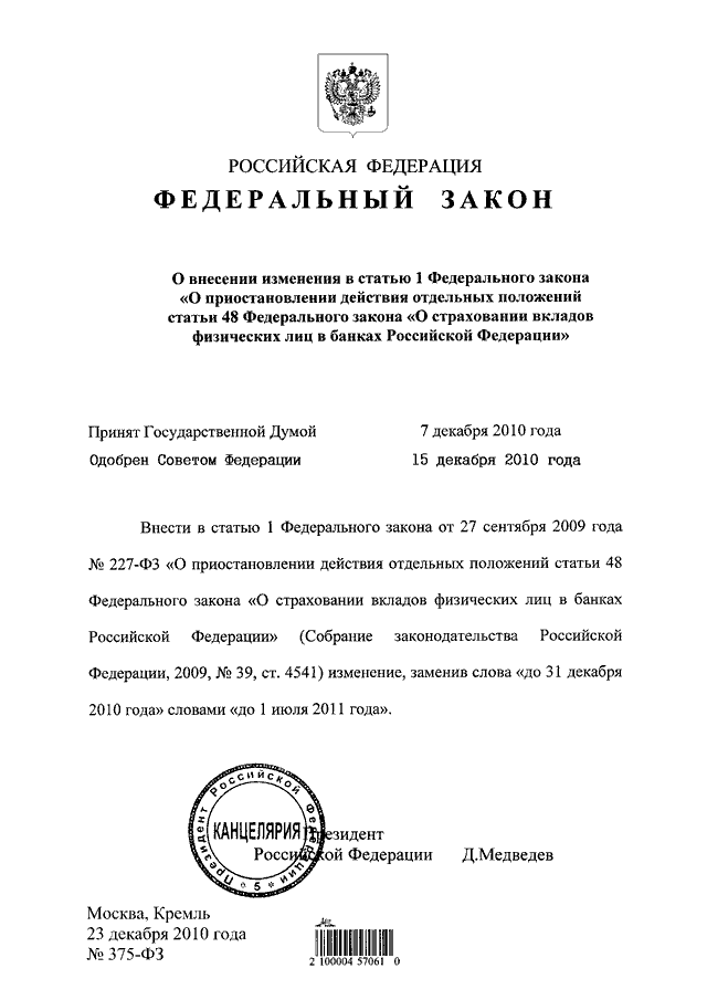 ФЕДЕРАЛЬНЫЙ ЗАКОН от 23.12.2010 N 375-ФЗ
