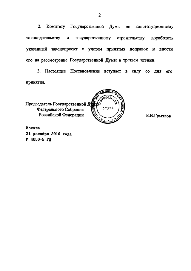 ПОСТАНОВЛЕНИЕ ГД ФС РФ от 21.12.2010 N 4650-5 ГД