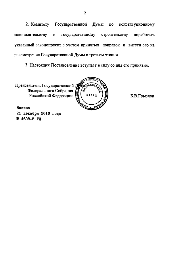 ПОСТАНОВЛЕНИЕ ГД ФС РФ от 21.12.2010 N 4628-5 ГД